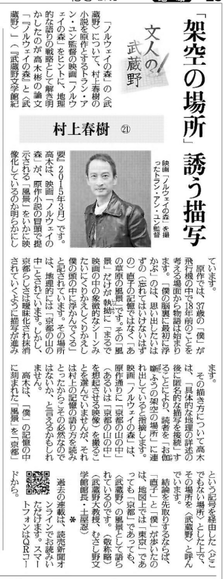 文人の武蔵野 第一五一回 村上春樹㉑